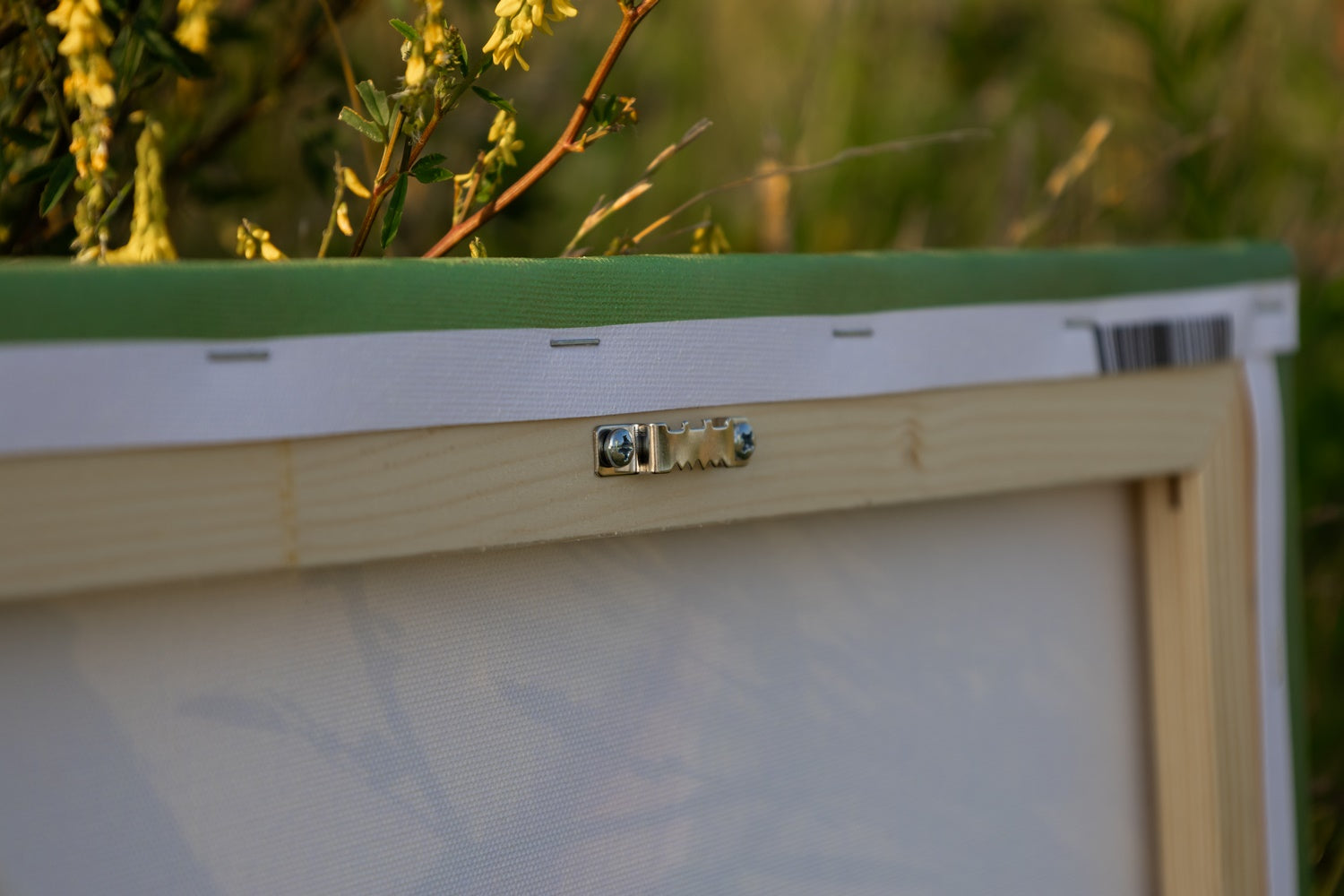Every canvas comes included with a mounting kit that makes it easy to hang them onto any wall. The specifics of the mounting kit depends on your location and may vary from the picture.