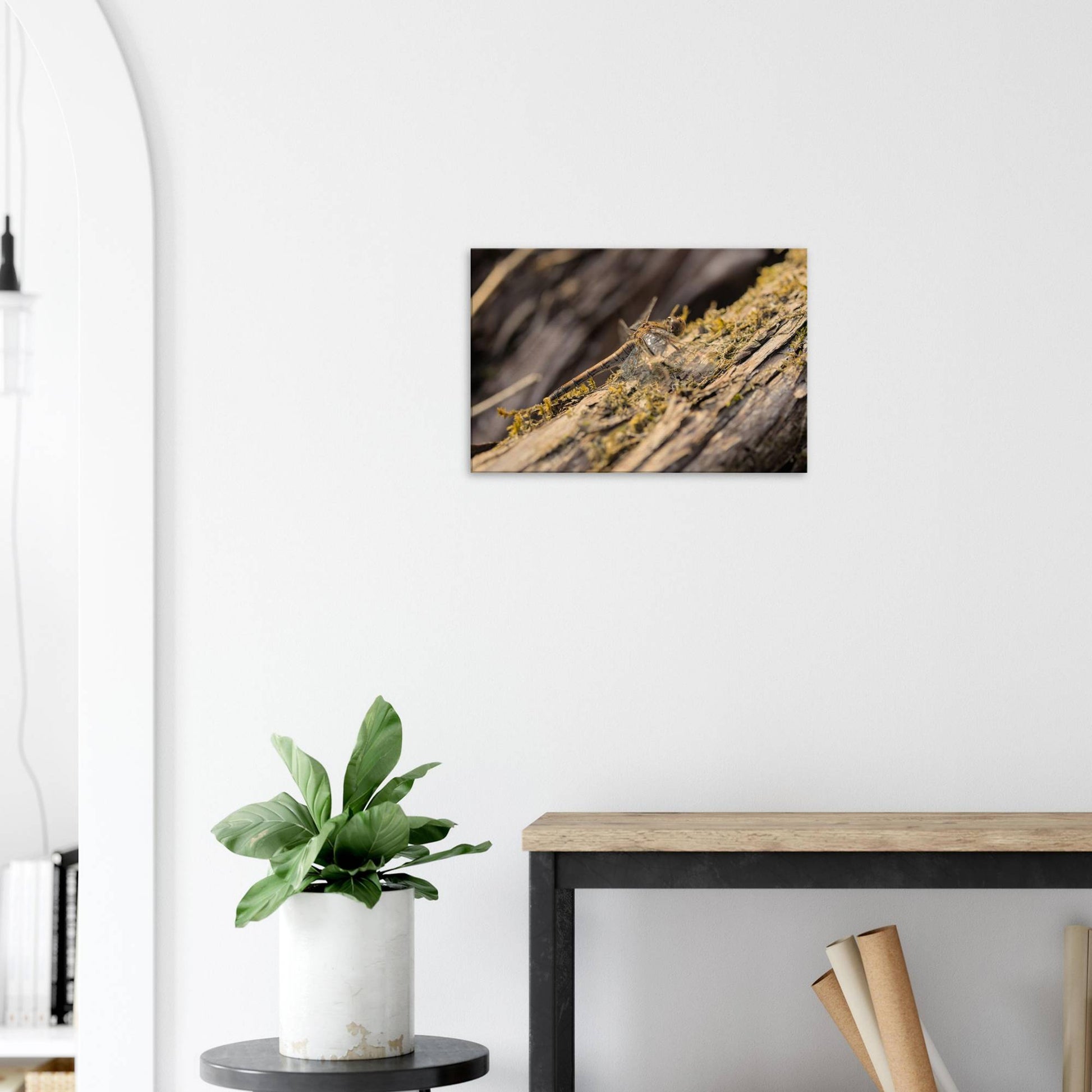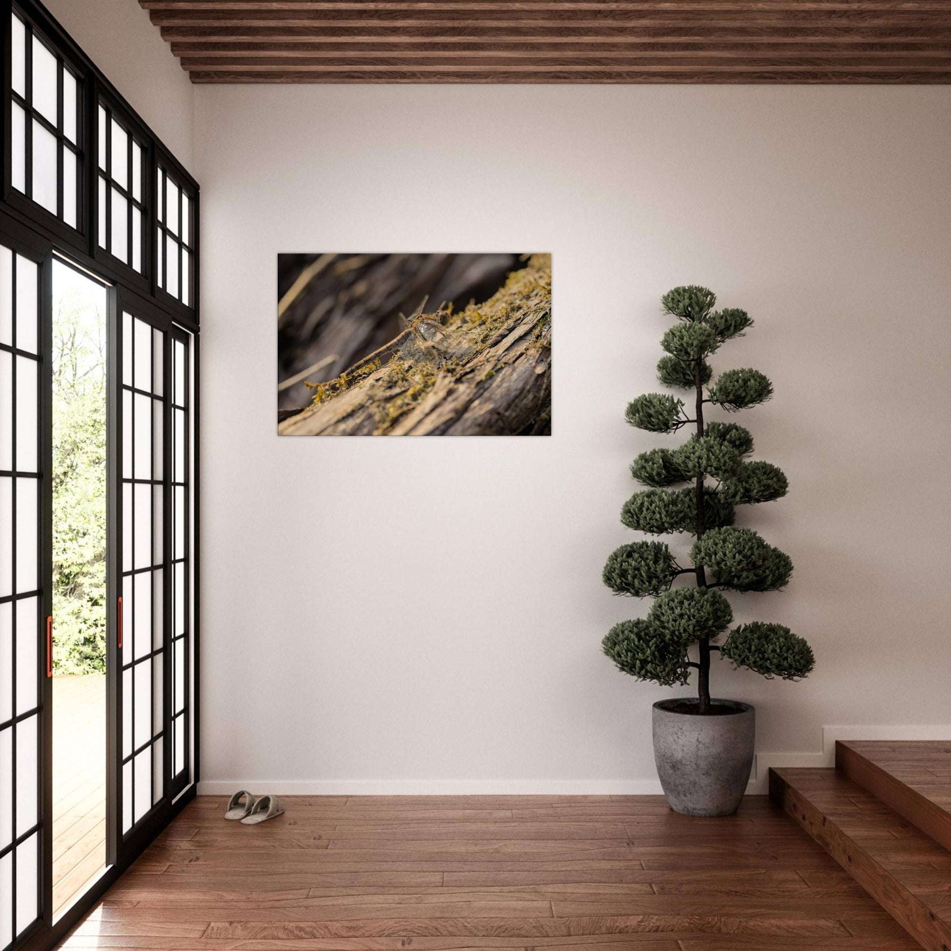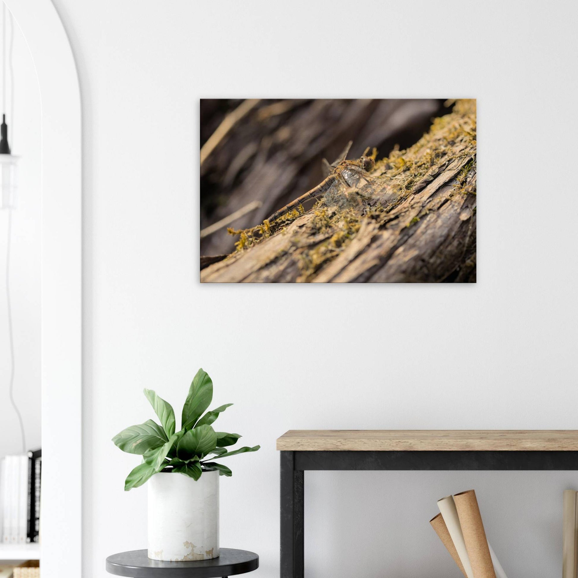 A dragonfly who is calmly seated on a mossy log. This print will give you a pleasant sense of warmth and appreciation for nature's beauty.