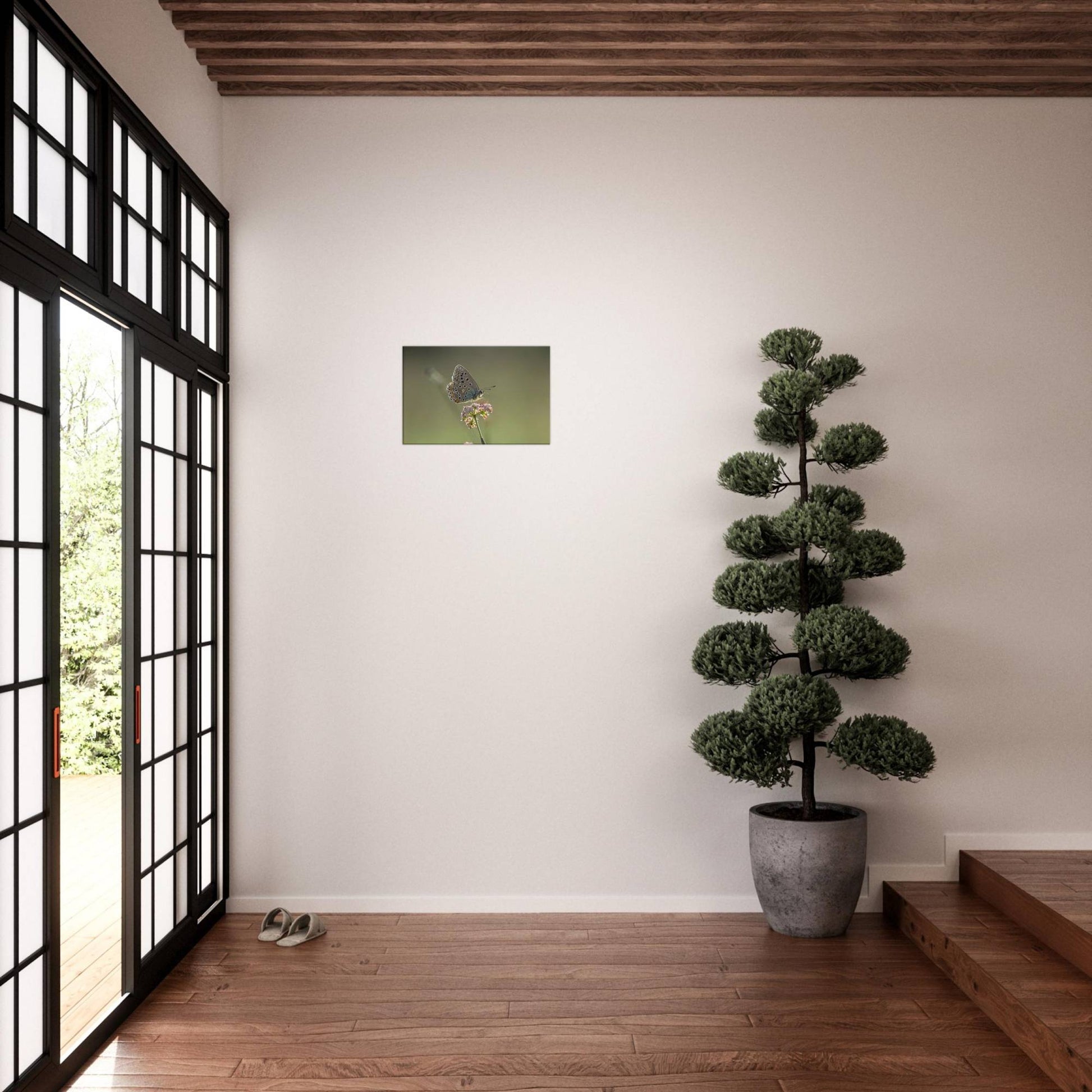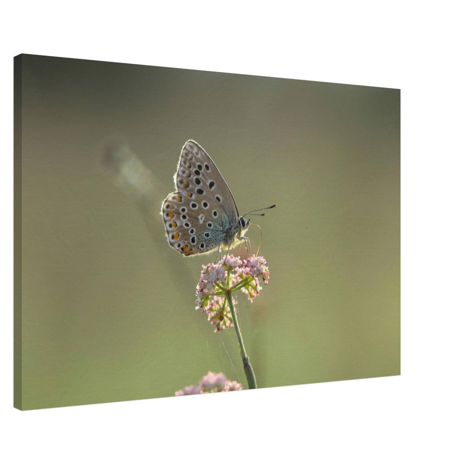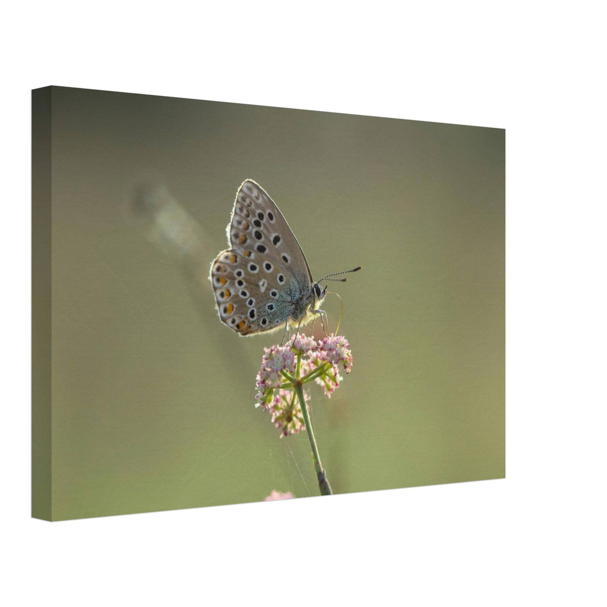 Portrait of a common blue butterfly posing on a flower while enjoying its nectar.